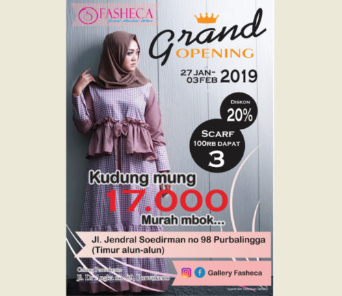 Informasi Diskon Besar di Grand Opening GALLERY FASHECA · termasuk dalam kategori Lowongan Kerja Purbalingga, Lowongan Kerja Purwokerto . Lihat juga Lowongan Kerja Purbalingga, Lowongan Kerja Purwokerto lainnya :